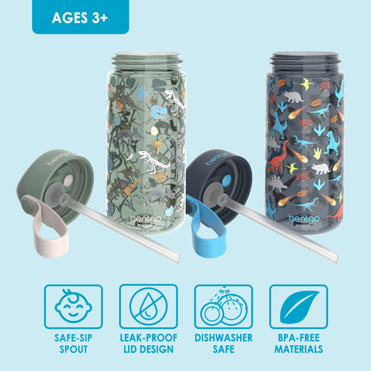® Kids Water Bottle 2-Pack - New, Improved 2023 Leak-Proof Bpa-Free 15 Oz Cups for Toddlers & Children - Flip-Up Safe-Sip Straw for School, Sports, Daycare, Camp (Dinosaur/Dino Fossils)