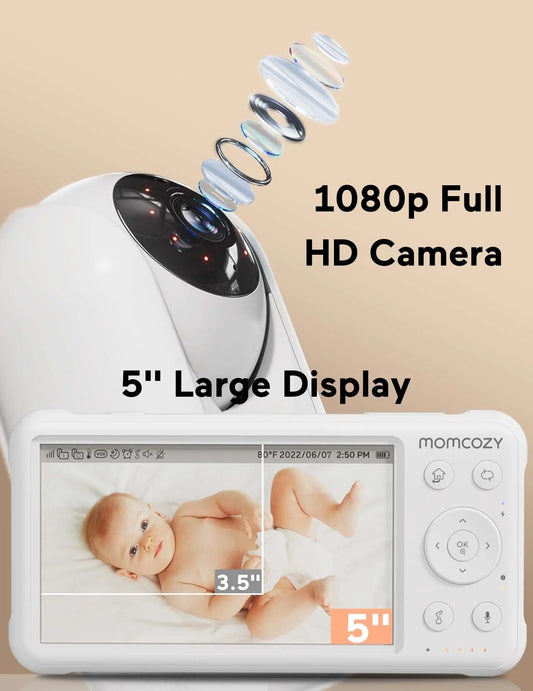 Video Baby Monitor, 5'' Display, 1080P HD, Infrared Night Vision, Long Range, 2-Way Talk
