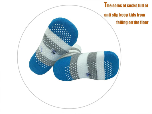 Assorted Non Skid Ankle Socks 5 Pairs 8-36 Months Baby Walker Boys Toddler anti Slip Knit Stripes Star Grips Socks
