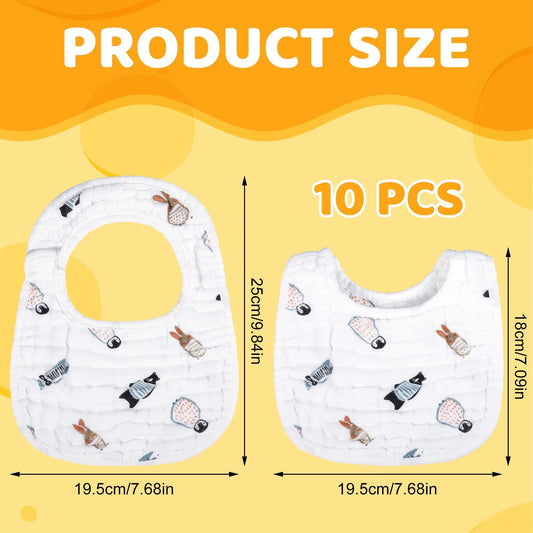 Baby Boy Muslin Cotton Cloth Drool Baby Bibs with Adjustable Snap, 10 Pieces