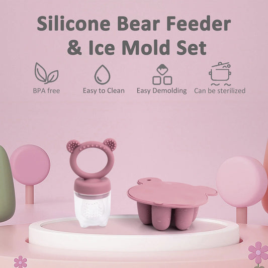Silicone Baby Fruit Feeder and Teether Set with Breastmilk Popsicle Freezer Molds, Rose