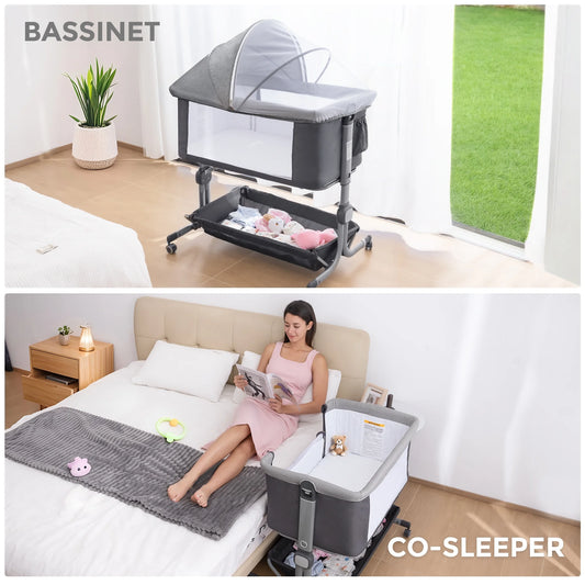 Portable Baby Bedside Sleeper Bassinet with Waterproof Mattress Pad for Infant Newborn up to 12 Month