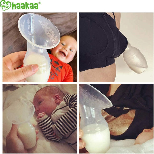 Manual Breast Pump with Storage Milk Bottle for Breastfeeding 100% Food Grade Silicone BPA PVC and Phthalate Free (4Oz/100Ml Pump + 160Ml Storage Milk Bottle)