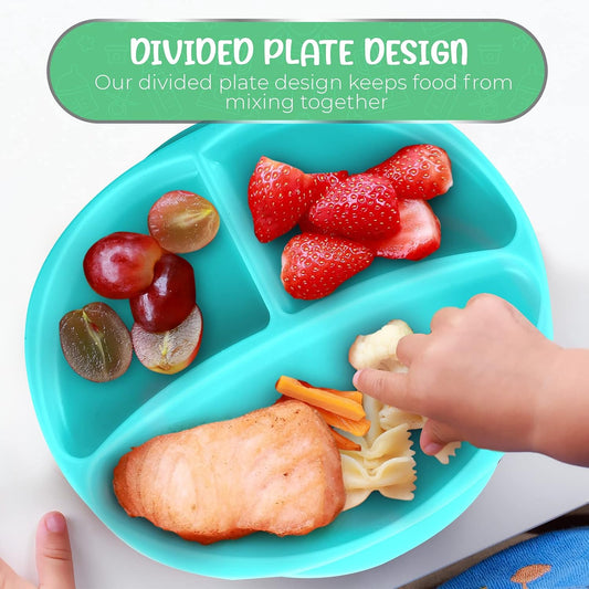 Silicone Suction Plate for Baby - 100% Food Grade Silicone Divided Plate | Toddler Self Feeding Training Suction Plate Set | Bpa-Free, Microwave & Dishwasher Safe Stay Put Plates (Blue & Light Green)