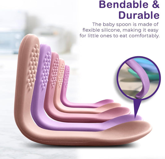 First Stage Silicone Baby Spoon - Self Feeding Utensils for Infants - Soft & Gentle on Gums - BPA Free Set (Pastel2)